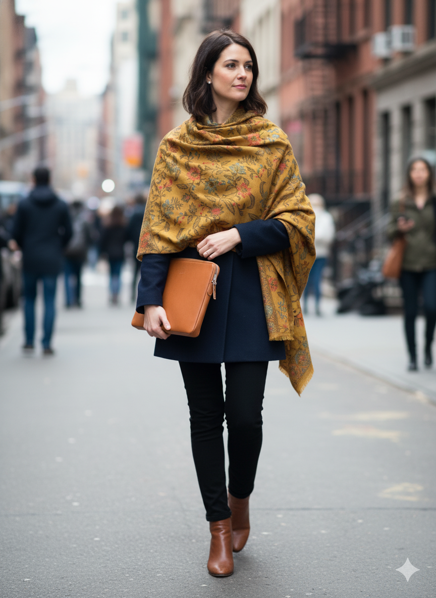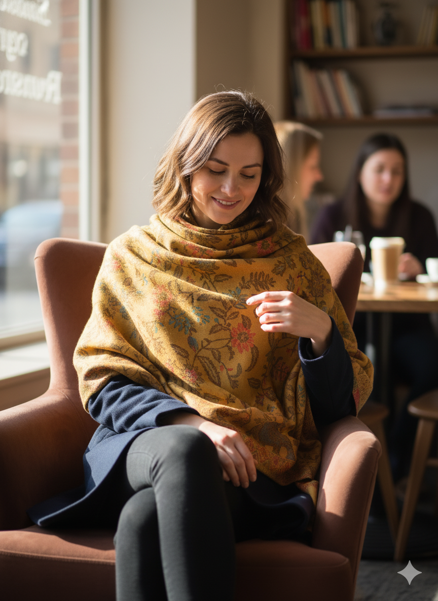 The versatility of this shawl astounds me. It's perfect for draping over my shoulders on cool evenings, wrapping snugly around my neck on colder days, or adding a touch of sophistication to a simple outfit.