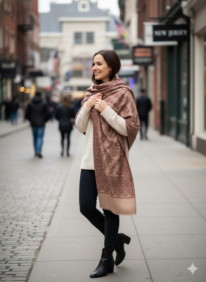 The versatility of this shawl astounds me. It's perfect for draping over my shoulders on cool evenings, wrapping snugly around my neck on colder days, or adding a touch of sophistication to a simple outfit.