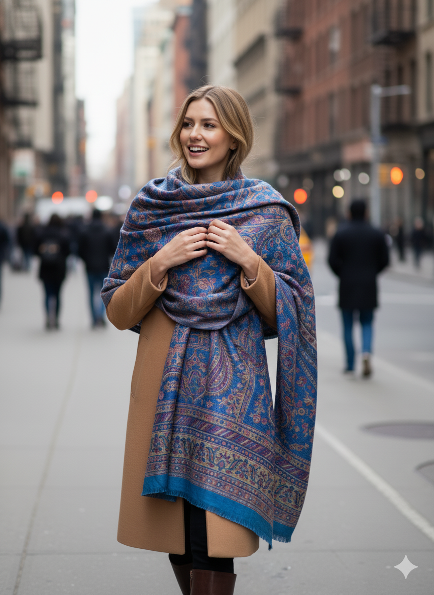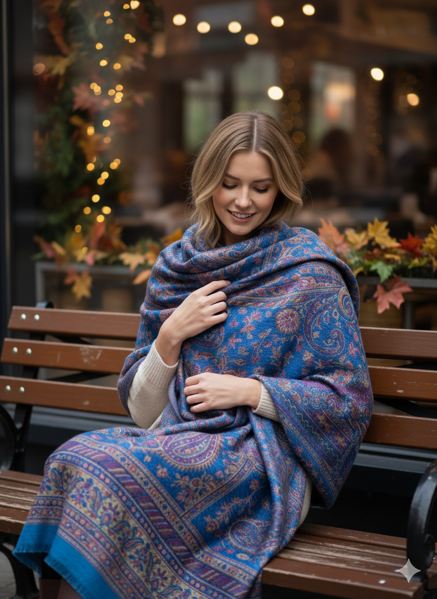The versatility of this shawl astounds me. It's perfect for draping over my shoulders on cool evenings, wrapping snugly around my neck on colder days, or adding a touch of sophistication to a simple outfit.